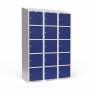 Garderobeskab 3x400 mm Skråt tag 5 rum i højden Blå dør Cylinderlås