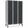 Garderobeskab 3x400mm m/lige tag, antracit dør med cylinderlås og benramme