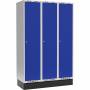 Garderobeskab 3x400mm m/lige tag, blå dør med cylinderlås og sokkel