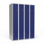Garderobeskab 4x300 mm Lige tag 2-delt søjle Z-dør Blå dør Cylinderlås