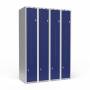 Garderobeskab 4x300 mm Lige tag 2-delt søjle Z-dør Blå dør Greb for hængelås