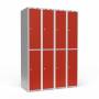 Garderobeskab 4x300 mm Lige tag 2 rum i højden Rød dør Cylinderlås