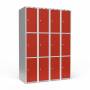 Garderobeskab 4x300 mm Lige tag 3 rum i højden Rød dør Cylinderlås