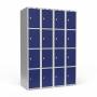 Garderobeskab 4x300 mm Lige tag 4 rum i højden Blå dør Greb for hængelås