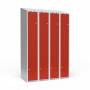 Garderobeskab 4x300 mm Skråt tag 2-delt søjle Z-dør Rød dør Cylinderlås
