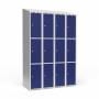 Garderobeskab 4x300 mm Skråt tag 3 rum i højden Blå dør Cylinderlås