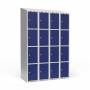 Garderobeskab 4x300 mm Skråt tag 4 rum i højden Blå dør Cylinderlås