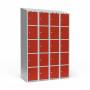 Garderobeskab 4x300 mm Skråt tag 5 rum i højden Rød dør Cylinderlås