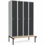 Garderobeskab 4x300mm m/lige tag, antracit dør med greb for hængelås og siddebænk