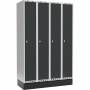 Garderobeskab 4x300mm m/lige tag, antracit dør med greb for hængelås og sokkel
