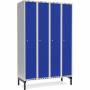 Garderobeskab 4x300mm m/lige tag, blå dør med cylinderlås og benramme
