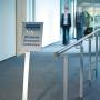 INFO SIGN gulvskilt i stilrent design som passer til placering i lobbyer, restauranter, udstillinger m.m. Skiltet er i A3-format af aluminium med refleksfri frontplade i akryl og kan nem bruges vertikalt eller horisontalt. Skiltet kan monteres i forskellige højder og synsvinklen kan også justeres til 10 grader afhængig af skiltet er højt op eller længere nede foden. Stabil fod med gummi fødder. Leveres med neutralt indstiksark. Design selv en personlig designet indstiksetiket til skiltet med gratis skabelon på www.duraprint.dk Mål: skilt i højformat højde 1,25m / 1,18m, skilt i tværformat højde 1,20m/1,13m.