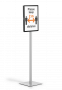Beskrivelse af Gulvskilt info stand basic a3 Robust gulvstander med skilt, der kan bruges i stående eller liggende format, samt mulighed for at have skilteinformation på både for- og bagsiden. Det er nemt at udskifte dokumentet i A3-inforammen