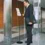 • Gulvskilt med glasklar informationstavle i akryl (artikelnr. 5619) og metalfod • Højdeindstillelig (92–147 cm) • Med indstillelig læsevinkel +/-14° • Informationsgulvstanderen er ideel til messer, udstillings- og salgsrum samt i hoteller og restauranter • 5 års garanti