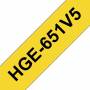 Labeltape Brother HGe-651V5 24mmx8m sort på gul 5stk/pak