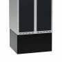Høj sokkel for garderobeskab med bredde 600 mm og dybde 550 mm. Soklen giver en pæn afslutning mod gulvet, letter adgangen til skabet og har en højde på 320 mm, som lægges til garderobeskabets højde. Leveres som standard pulverlakeret i sort RAL 9005.