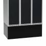 Høj sokkel for garderobeskab med bredde 900 mm og dybde 550 mm. Soklen giver en pæn afslutning mod gulvet, letter adgangen til skabet og har en højde på 320 mm, som lægges til garderobeskabets højde. Leveres som standard pulverlakeret i sort RAL 9005.
