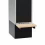 Høj sokkel med bænkkonsol til garderobeskabe med bredde 400 mm og dybde 550 mm. Sokkelhøjde er 320 mm, som lægges til skabets højde for at få en totalhøjde. Produceret af pulverlakeret metal. Farve sort RAL 9005. Siddebænk i birk højtrykslaminat. Total dybde er 865 mm.