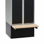 Høj sokkel med bænkkonsol til garderobeskabe med bredde 700 mm og dybde 550 mm. Sokkelhøjde er 320 mm, som lægges til skabets højde for at få en totalhøjde. Produceret af pulverlakeret metal. Farve sort RAL 9005. Siddebænk i birk højtrykslaminat. Total dybde er 865 mm.
