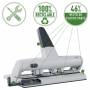 Stærk og holdbar justerbar hulapparat til hulning af op til 30 ark (80 g) Det brugervenlige klipsystem gør det muligt at justere antallet af huller og deres placering efter behov Huller op til 6 huller på én gang og leveres med 4 hulpiber (ekstra hulpiber fås separat) Fremstillet af 89 % robust metal og 11 % plast (46 % post consumer recirkuleret plast) Ved slutningen af dens levetid er den 100 % recirkulerbar, når den er helt adskilt i de forskellige materialetyper Design og materialer af høj kvalitet, kan repareres med reservedele for at forlænge hulapparatet levetid. Reservedele: 51230000 Hulpibe 6mm, 51240000 Hulpibe 8mm og 51700000 Affaldsbeholder Justerbar skala med lineal i cm, tommer og indstillinger til de mest almindelige brevordnere og personlige kalendre Nøjagtig hulning ved hjælp af den sikre papirguide med letlæselige markeringer op til A2-format Låsemekanisme på håndtaget for at spare opbevaringsplads, når hulapparatet ikke er i brug Leveres med 10 års garanti og er GS sikkerhedstestet Kompakt og fuldt recirkulerbar plastfri emballage