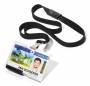 Beskrivelse af Id-kortholder pushbox mono med halssnor Holder med plads til 1 stk sikkerhedskort med separat rum og kortskyder. Leveres med sort halssnor. 10 stk.