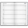 Mini planlægningskalender. Kalenderen er indbundet med et omslag i mørkegråt PP-plast, hvilket gør den stærk over for slid. Den lille, smarte planner er inddelt med en måned pr. opslag og indeholder et timeopdelt kalenderskema fra kl. 8-18, så du får et godt overblik over hele månedens aftaler og aktiviteter. Dertil finder du et udstanset månedsregister samt en adresseliste.