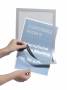 Den professionelle måde at annoncere. Den selvklæbende inforamme DURAFRAME® er den ideelle løsning for at vise oplysninger på solide og glatte overflader. • Viser oplysninger på en professionel og elegant måde • Hurtigt at installere og udskifte indholdet takket være den oplukkelige magnetisk ramme • Nemt at sætte op på faste og glatte overflader; kan fjernes igen fra glas • Anvendelsesområder: at vise og præsentere informationer i A4 format, f.eks. skilte, kampagnetilbud, reklamer, åbningstider • Ved anvendelse på glas, kan informationen læses fra begge sider • Rammen ser identisk ud fra begge sider • Til anvendelse i stående eller liggende format • Ydermål: 236 x 323 mm • Placering af selvklæbende DURAFRAME® inforammer på malet, coatede og laminerende overflader, anbefales ikke, da denne overflade kan blive beskadiget når rammen fjernes. Til disse overflader anbefaler vi DURAFRAME® WALLPAPER som findes i A3 og A4 formater. 10 stk/pose sølv