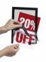 Den professionelle måde at annoncere. Den selvklæbende inforamme DURAFRAME® er den ideelle løsning for at vise oplysninger på solide og glatte overflader. • Viser oplysninger på en professionel og elegant måde • Hurtigt at installere og udskifte indholdet takket være den oplukkelige magnetisk ramme • Nemt at sætte op på faste og glatte overflader; kan fjernes igen fra glas • Anvendelsesområder: at vise og præsentere informationer i A5 format, f.eks. skilte, kampagnetilbud, reklamer, åbningstider • Ved anvendelse på glas, kan informationen læses fra begge sider • Rammen ser identisk ud fra begge sider • Til anvendelse i stående eller liggende format • Ydermål: 236 x 176 mm • Placering af selvklæbende DURAFRAME® inforammer på malet, coatede og laminerende overflader, anbefales ikke, da denne overflade kan blive beskadiget når rammen fjernes. Til disse overflader anbefaler vi DURAFRAME® WALLPAPER som findes i A3 og A4 formater. 10 stk/pose sort