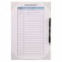 Selvklæbende flytbar dokumentlomme med åben fremside og penneholder. A4 format. Dokumentet holdes på plads i hjørnerne, hvilket gør det muligt at skrive direkte på papiret. Kan fastgøres på de fleste jævne overflader og flyttes uden at efterlade mærker! Kan indeholde flere dokumenter og bruges i både stående og liggende format. Perfekt til f.eks. rengøringsskemaer. 100u PVC Emballage: 100% genbrugskarton og PP-plast (REACH + RoHS + SCHC). KANG lommer findes i flere varianter og kan sættes på de fleste glatte overflader uden at efterlade mærker! Ingen tape, hæftestift eller hæfteklammer er nødvendige, og overflader/vægge holdes intakte.