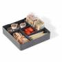 Kasse til opbevaring af kaffe og te tilbehør f. eks sukker pinde, omrører, servietter, kaffe fløde og kager i de enkelte pakning, chokoladebarer og tebreve. Med plads til mini affaldsbeholder (varenr. 394132). Tåler maskinopvask. Kan stables. Passer i opbevaringsboks Coffee Point Box (varenr. 394130). Mål: HxWxD 48x210x210mm.