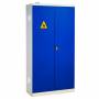 Kemikalieskab med blå, 2-låger og låsbar dør, med udvendig højde 1990 mm og Bredde 1000 mm. Leveres komplet med 4 stk. galvaniserede hylder tilpasset kemikalie- og væskespild.SMV kemikalieskabe er et helsvejst stålskab til brug på værkstedet, industrien, skoler og offentlig forvaltning, med låsbare, hængslede døre. Kemikalieskabet leveres komplet med flytbare, galvaniserede hylder som har kanter for opsamling af spild. Stålskabet har lufteventiler og Ø100 mm ventilationsstuds i toppen for tilkobling til ekstern ventilation, lysgrå kabinet RAL 7035 med blå døre RAL 5010.Kemikalieskabet har samme udførelse som materialeskabet i SMV -serien, og passer godt til brug i kombination med disse skabe. Kompletter med ekstra hylder ved behov.