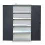 Kemikalieskab med antracit, 2-låger og låsbar dør, med udvendig højde 1990 mm og Bredde 1000 mm. Leveres komplet med 4 stk. galvaniserede hylder tilpasset kemikalie- og væskespild.SMV kemikalieskabe er et helsvejst stålskab til brug på værkstedet, industrien, skoler og offentlig forvaltning, med låsbare, hængslede døre. Kemikalieskabet leveres komplet med flytbare, galvaniserede hylder som har kanter for opsamling af spild. Stålskabet har lufteventiler og Ø100 mm ventilationsstuds i toppen for tilkobling til ekstern ventilation, lysgrå kabinet RAL 7035 med Antracit grå døre RAL 7016.Kemikalieskabet har samme udførelse som materialeskabet i SMV -serien, og passer godt til brug i kombination med disse skabe. Kompletter med ekstra hylder ved behov.