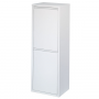 Kildesorteringsskab med to dører som kan åbnes individuelt og med indvendige beholdere i recirkuleret plast. Flot til montering på væggen. Men kan også bruges på gulvet.