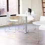 Konference- og kantinestol FLY i hvid plastkomposit med alugråt understel RAL9006. Stolen FLY er designet af den kendte, italienske designer Claudio Bellini og har har vundet den prestigefyldte designpris Red Dot Award. Stolen har et meget stabilt og lækkert designet sæde og ryg, lavet i et patenteret plastkomposit. Måske passer FLY bedst til brug i kantiner, møderum eller som ventestole på et kontor? Stolen har understel i en lukket udførelse, hvilket betyder at der bliver betydelig mindre støj end med de mere traditionelle fire ben. FLY er pris sat pr. stk, men bestilles og leveres i pakker á 4 stk.