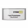 Navneskilt CLASSIC med sølv finish og magnet 74x34mm (BxH). Denne højkvalitets navneskilt serie CLASSIC kombinerer højeste kvalitet, elegant design og holdbar funktionalitet. Perfekt til udstillinger, hotel og restauranter, butikker osv. Sidder sikkert på plads med den kraftige magnet, hvilket er en meget textilvenlig metode at fastgøre på. Fungerer også på sarte textiler. Indstik medfølger. Mål indstik: 74x34mm (BxH). Indstiksetiket på A4 ark til udskrivning i printer kan bestilles separat (Durable art nr 142502). Design selv en personlig designet kongressmærke med gratis skabelon på https://www.durable.eu/en_DE/duraprint/ . OBS må ikke anvendes af personer med pacemaker!