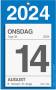 Afrivningskalender til vægophæng. Den smarte vægkalender har et praktisk blokformat, hvor hver side nemt kan rives af blokken, når dagen er gået. Afrivningskalenderen har et enkelt og moderne design med en blå baggrund og har bagsidetekster og et ugentligt krydsord.