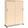4A4 kontorskab i kontormøbelserien DNA, med 4A4 skydedør, udvendig bredde x dybde x højde, 1200 x 400 x 1660 mm, inkl. understel. Dette kontorskab leveres med birk laminat kabinet i kombination med birk laminat døre og på et flot sort understel, miljørigtig pulverlakeret.
