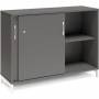 2A4 kontorskab i kontormøbelserien DNA, med 2A4 skydedør, udvendig bredde x dybde x højde, 1200 x 400 x 890 mm, inkl. understel. Dette kontorskab leveres med antracit laminat kabinet i kombination med antracit laminat døre og på et flot hvidt understel, miljørigtig pulverlakeret.