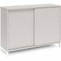 2A4 kontorskab i kontormøbelserien DNA, med 2A4 skydedør, udvendig bredde x dybde x højde, 1200 x 400 x 890 mm, inkl. understel. Dette kontorskab leveres med lys grå laminat kabinet i kombination med lys grå laminat døre og på et flot hvidt understel, miljørigtig pulverlakeret.