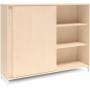 3A4 kontorskab i kontormøbelserien DNA, med 3A4 skydedør, udvendig bredde x dybde x højde, 1600 x 400 x 1275 mm, inkl. understel. Dette kontorskab leveres med birk laminat kabinet i kombination med birk laminat døre og på et flot hvidt understel, miljørigtig pulverlakeret.