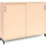 3A4 kontorskab i kontormøbelserien DNA, med 3A4 skydedør, udvendig bredde x dybde x højde, 1600 x 400 x 1275 mm, inkl. understel. Dette kontorskab leveres med birk laminat kabinet i kombination med birk laminat døre og på et flot sort understel, miljørigtig pulverlakeret.