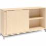 2A4 kontorskab i kontormøbelserien DNA, med 2A4 skydedør, udvendig bredde x dybde x højde, 1600 x 400 x 890 mm, inkl. understel. Dette kontorskab leveres med birk laminat kabinet i kombination med birk laminat døre og på et flot alugråt understel, miljørigtig pulverlakeret.