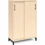 3A4 kontorskab i kontormøbelserien DNA, med 3A4 skydedør, udvendig bredde x dybde x højde, 800 x 400 x 1275 mm, inkl. understel. Dette kontorskab leveres med birk laminat kabinet i kombination med birk laminat døre og på et flot sort understel, miljørigtig pulverlakeret.