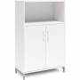 3A4 kontorskab i kontormøbelserien DNA, med 2A4 dør, udvendig bredde x dybde x højde, 800 x 400 x 1275 mm, inkl. understel. Dette kontorskab leveres med hvidt laminat kabinet i kombination med hvide laminat døre og på et flot alugråt understel, miljørigtig pulverlakeret.
