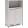 3A4 kontorskab i kontormøbelserien DNA, med 2A4 skydedør, udvendig bredde x dybde x højde, 800 x 400 x 1275 mm, inkl. understel. Dette kontorskab leveres med lys grå laminat kabinet i kombination med lys grå laminat døre og på et flot alugråt understel, miljørigtig pulverlakeret.