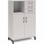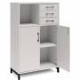 3A4 kontorskab i kontormøbelserien DNA, med 2A4 dør og skuffemodul, udvendig bredde x dybde x højde, 800 x 400 x 1275 mm, inkl. understel. Dette kontorskab leveres med lys grå laminat kabinet i kombination med lys grå laminat døre og skuffer, det hele på et flot sort understel, miljørigtig pulverlakeret.