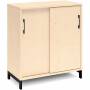 2A4 kontorskab i kontormøbelserien DNA, med 2A4 skydedør, udvendig bredde x dybde x højde, 800 x 400 x 890 mm, inkl. understel. Dette kontorskab leveres med birk laminat kabinet i kombination med birk laminat døre og på et flot sort understel, miljørigtig pulverlakeret.