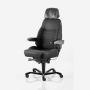 Kontorstol KAB Seating Executive, White-Line Sort fighter inkl. armlæn og nakkestøtte i sort skind