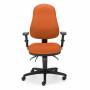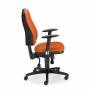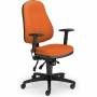 Kontorstol Offix i orange udførelse. Justerbare armlæn leveres som tilvalg. Offix er en videreudviklet kontorstol i standardklassen. Med et noget bredere sæde og højdejusterbar, ergonomisk udformet ryg har Offix bedre ergonomiske egenskaber end stole i denne klasse. Kontorstolen har synkron bevægelse mellem sæde og ryg og justerbar vinkel på sædet. Offix leveres på et sort Ø695 mm nylon understel med self-braking hjul til hårde gulve som standard. Sæde og ryg er betrukket med tekstil Lucia fra Camira, som består af 100% recirkuleret polyester og med følgende klassificeringer: Vægt: 260 g/m2 Slidstyrke: 50.000 Martindale Brandklasse: EN 1021-1 og 2 (cigaretter og tændstikker) / BS 7176: lav risiko / BS 476: Class 1