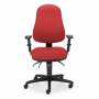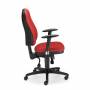 Kontorstol Offix i rød udførelse. Justerbare armlæn leveres som tilvalg. Offix er en videreudviklet kontorstol i standardklassen. Med et noget bredere sæde og højdejusterbar, ergonomisk udformet ryg har Offix bedre ergonomiske egenskaber end stole i denne klasse. Kontorstolen har synkron bevægelse mellem sæde og ryg og justerbar vinkel på sædet. Offix leveres på et sort Ø695 mm nylon understel med self-braking hjul til hårde gulve som standard. Sæde og ryg er betrukket med tekstil Lucia fra Camira, som består af 100% recirkuleret polyester og med følgende klassificeringer: Vægt: 260 g/m2 Slidstyrke: 50.000 Martindale Brandklasse: EN 1021-1 og 2 (cigaretter og tændstikker) / BS 7176: lav risiko / BS 476: Class 1